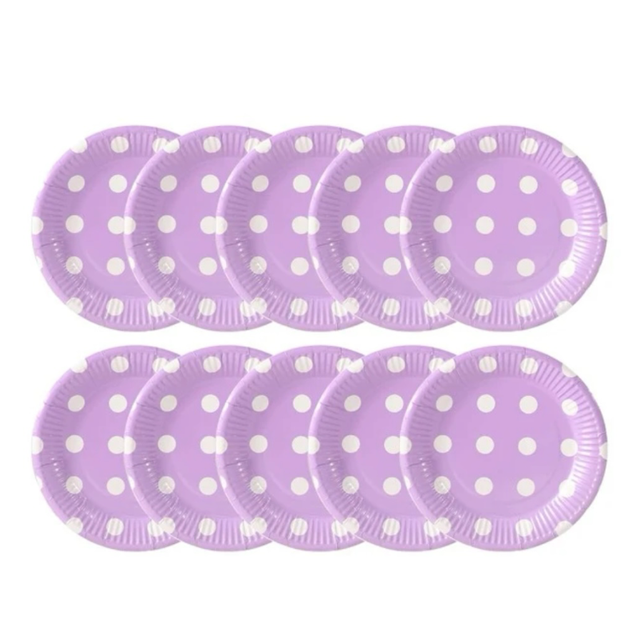 Pack of 10 Purple White Dots Paper plates