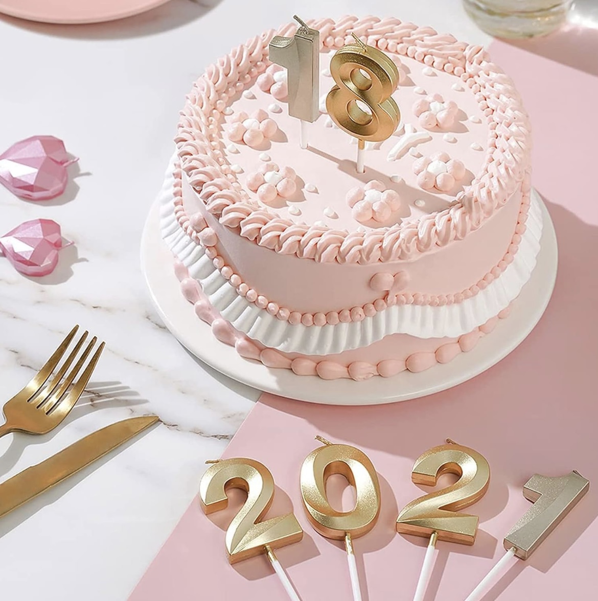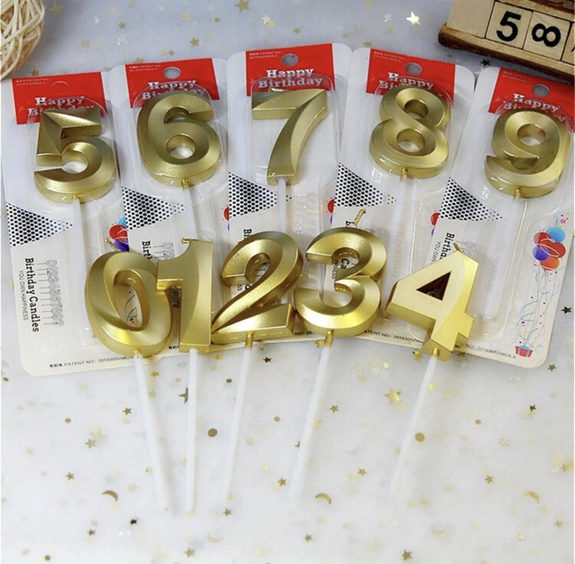 Gold 3D numbers candles