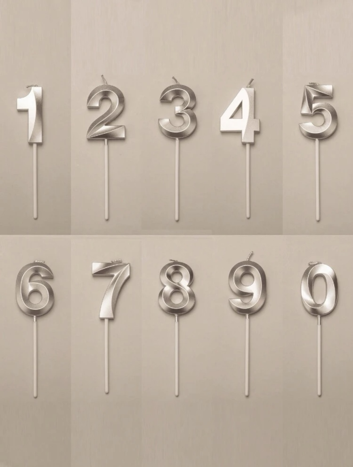 Silver 3D numbers candles