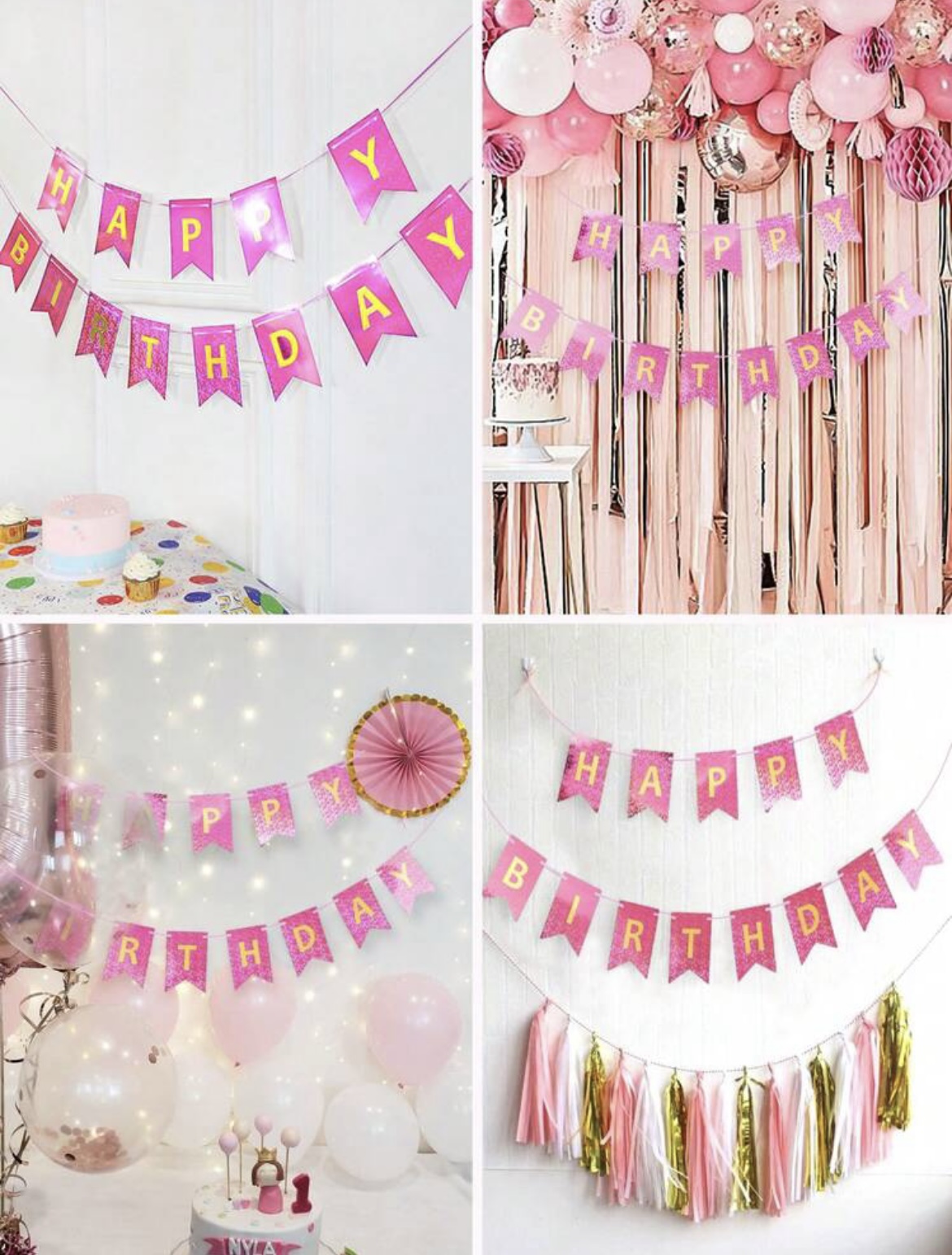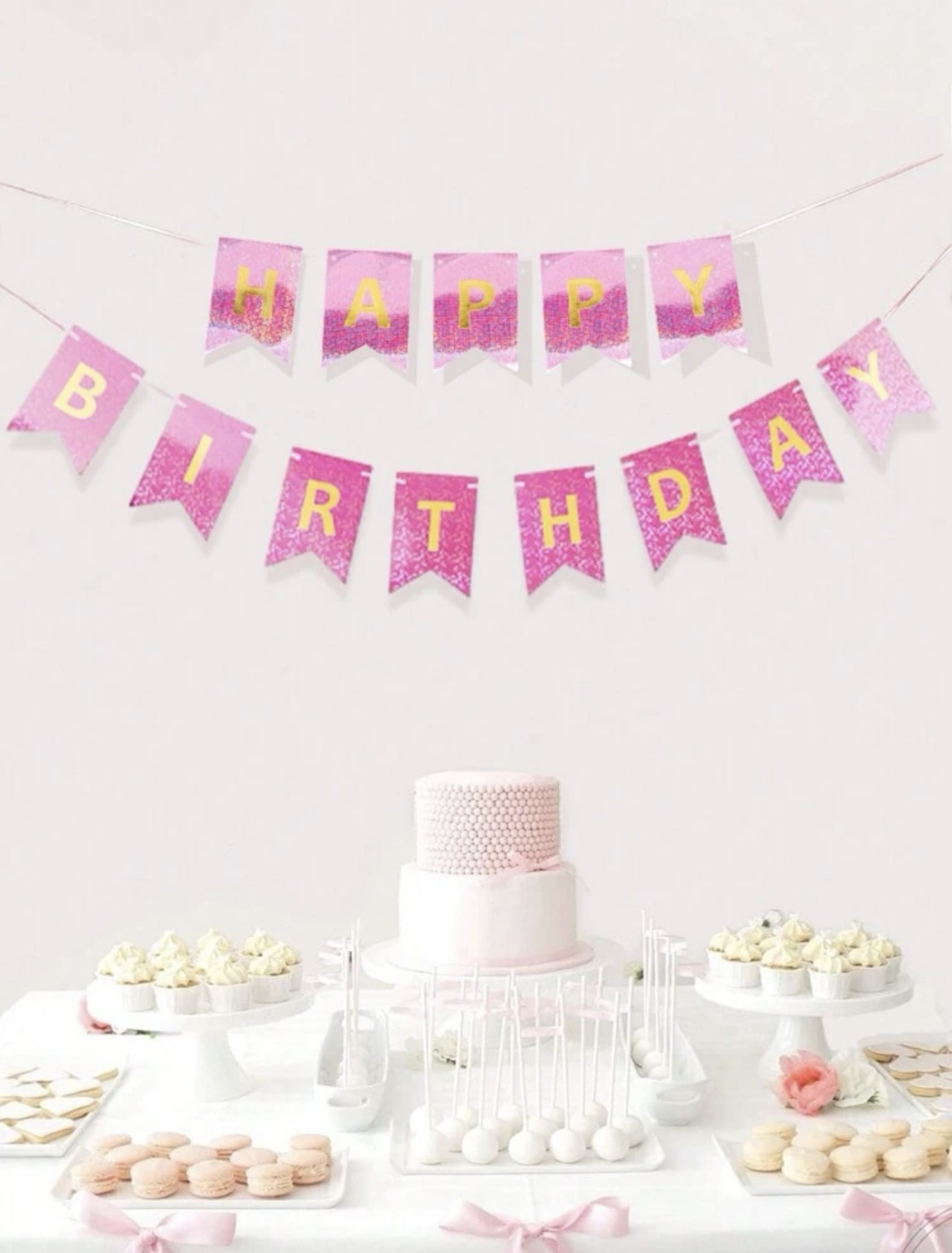 Una Fiesta - Fuscia Glitter happy birthday banner
