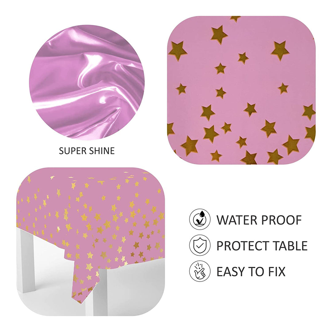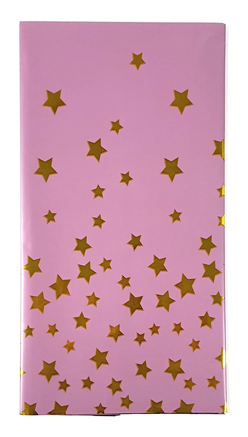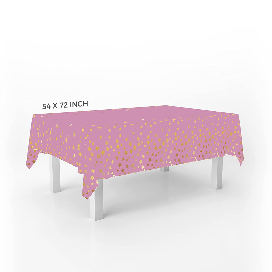 Pink Rectangular Shiny Metallic Tinsel Foil Star Print Reusable Table Cover