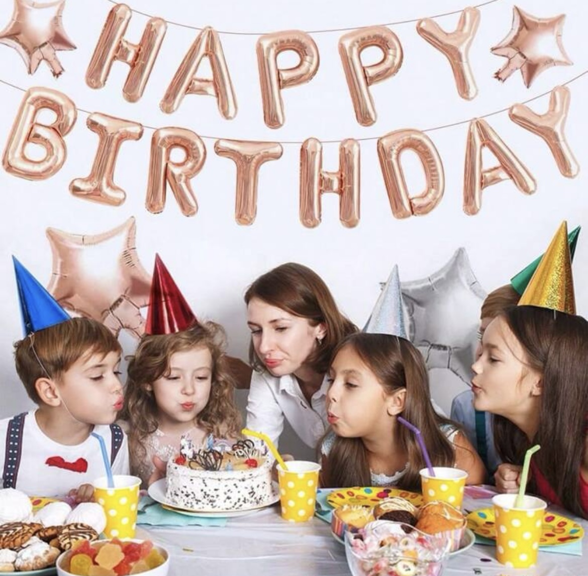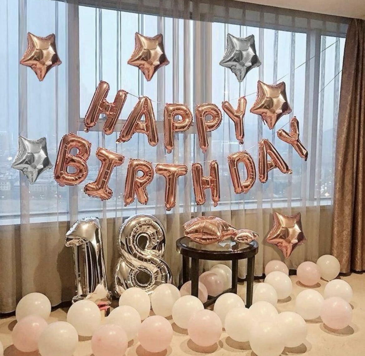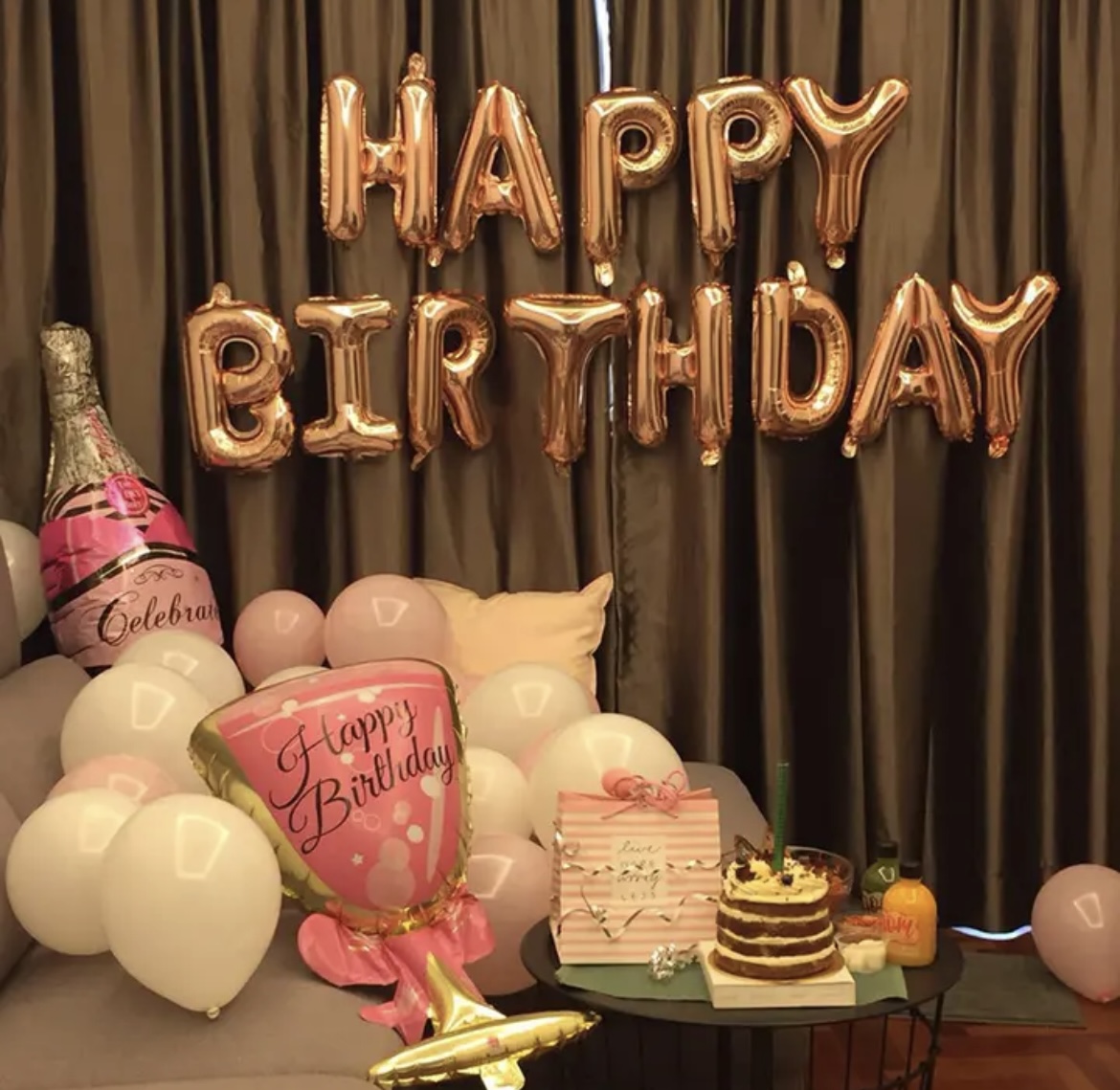 Rose gold happy birthday balloons