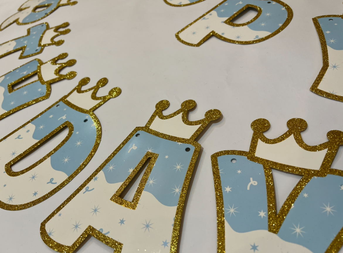 Glitter prince crown HBD banner