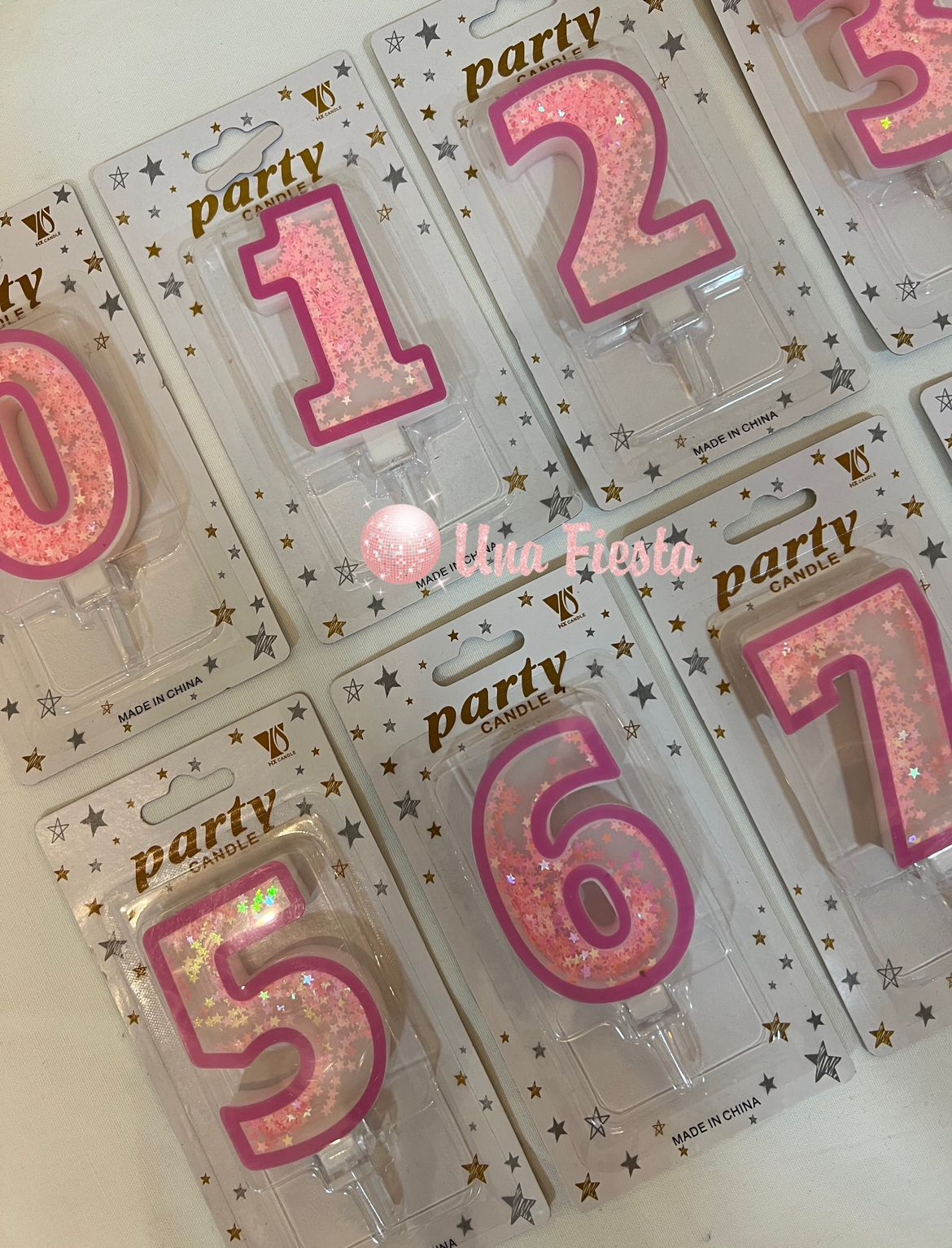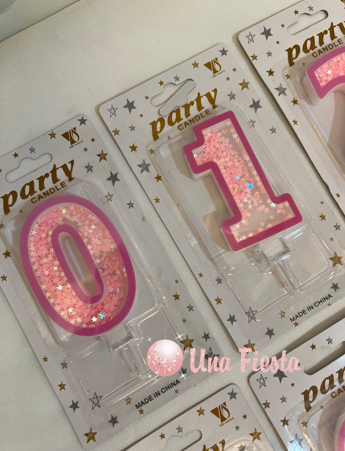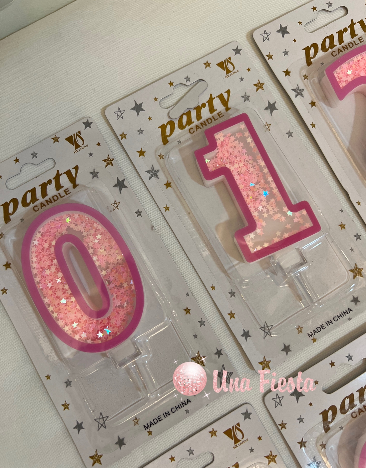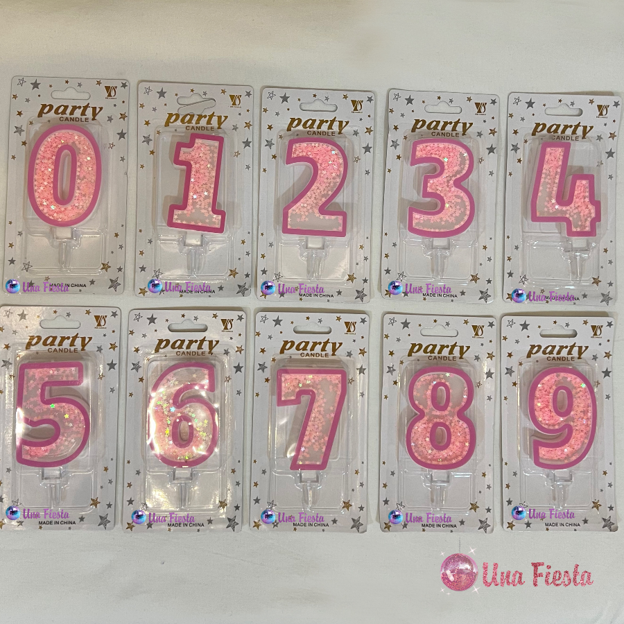 Una Fiesta - Pink sparkling numbers candles