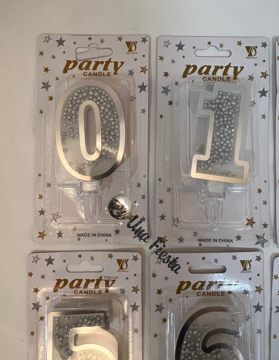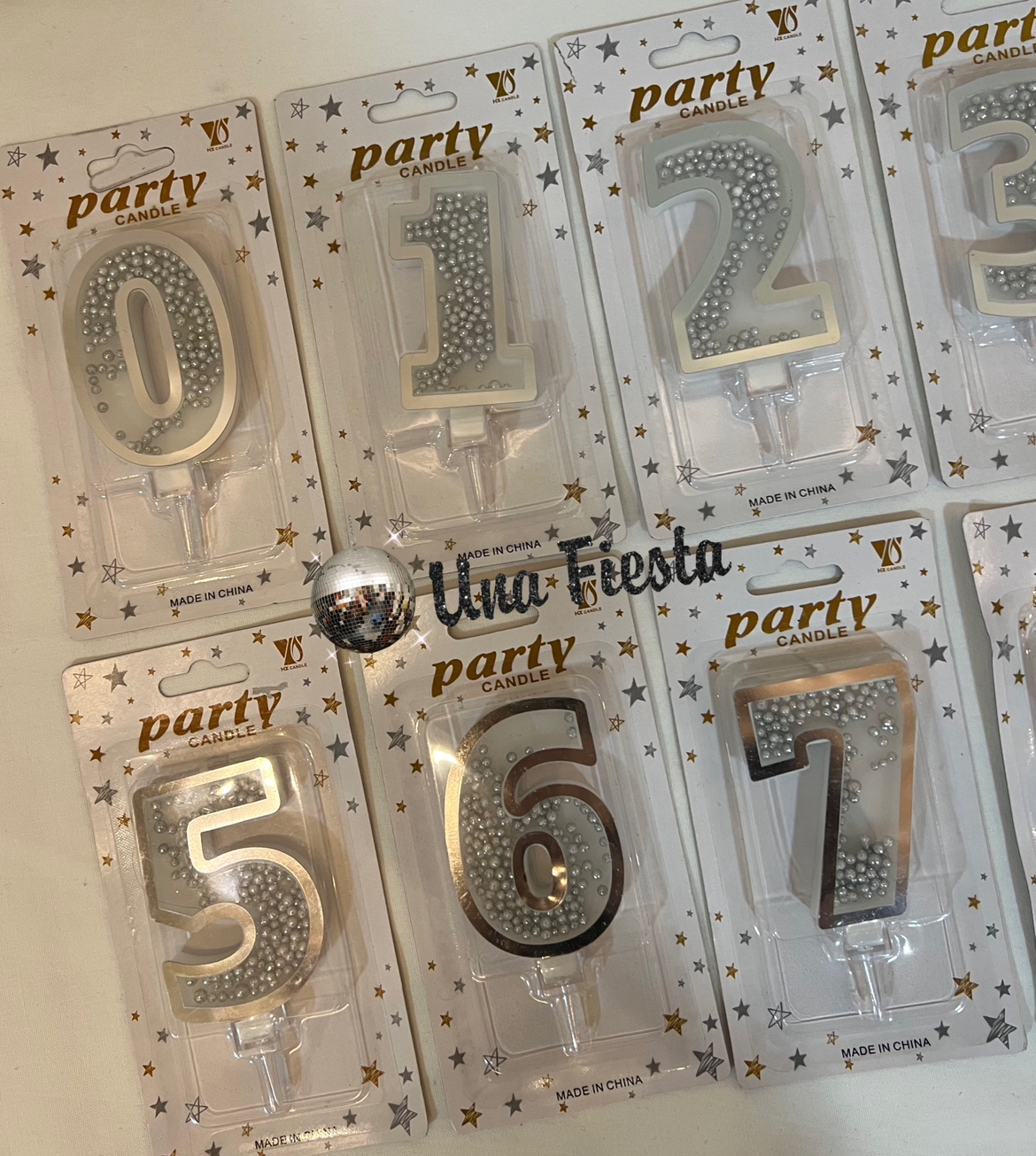 Una Fiesta - Silver sparkling numbers candles
